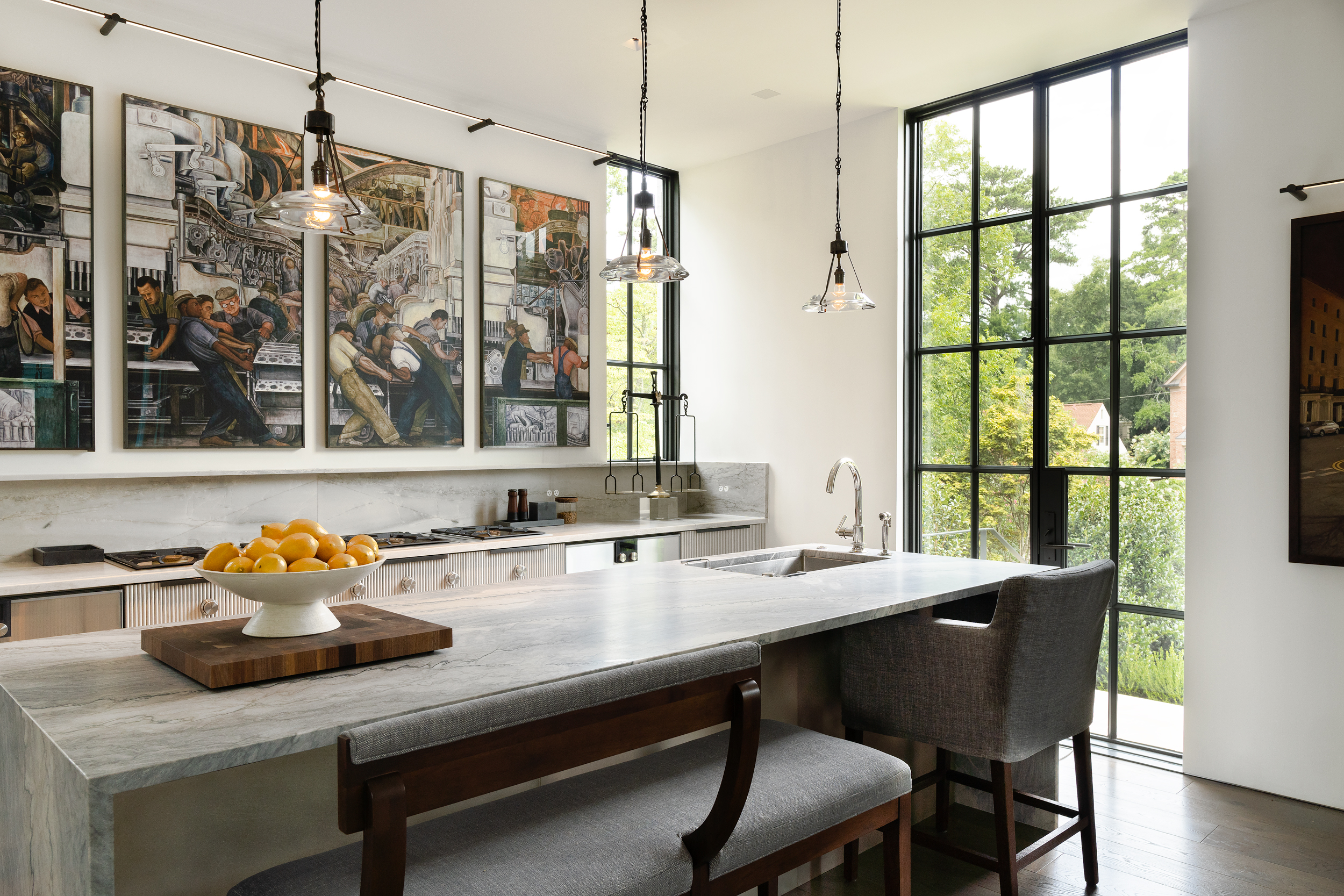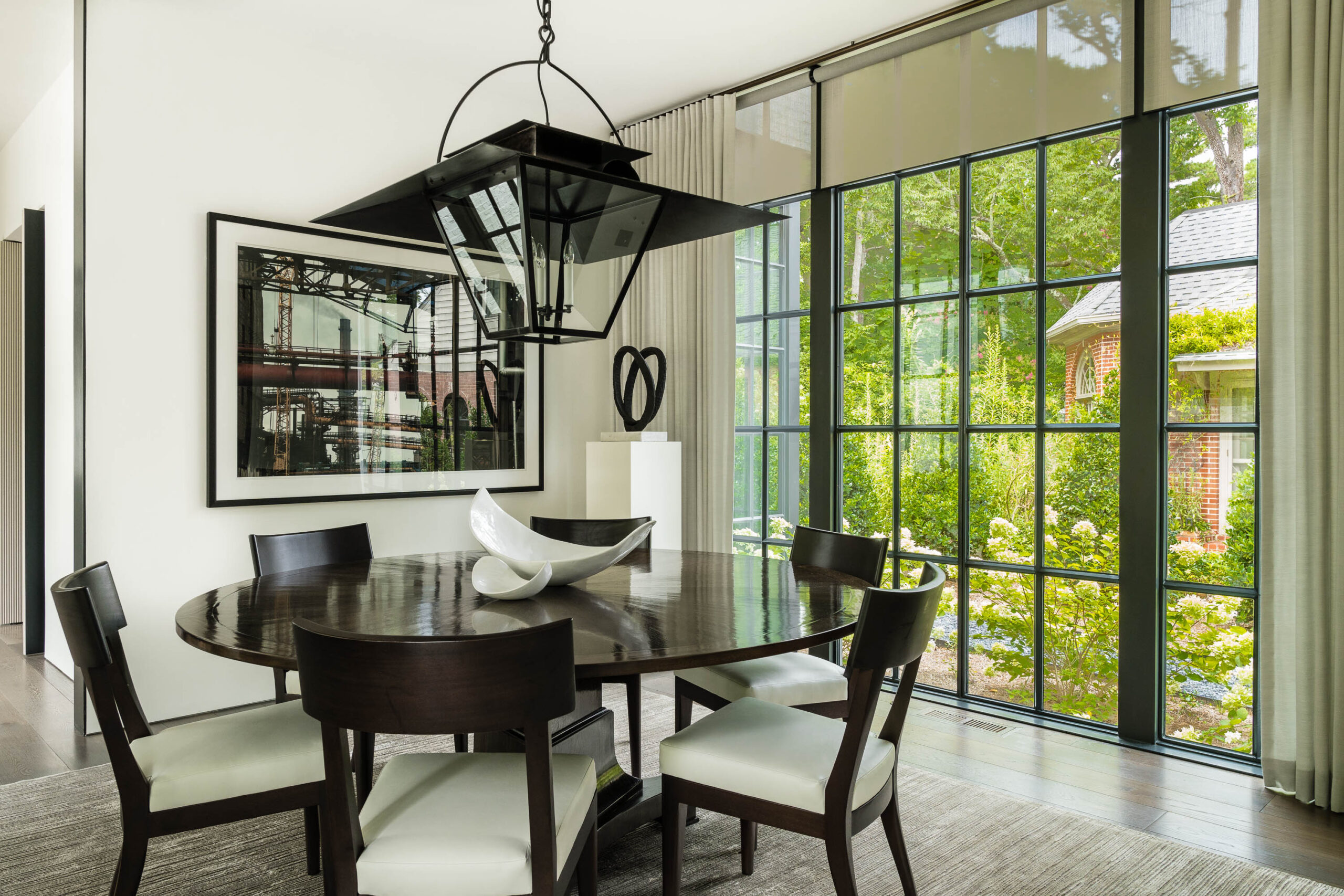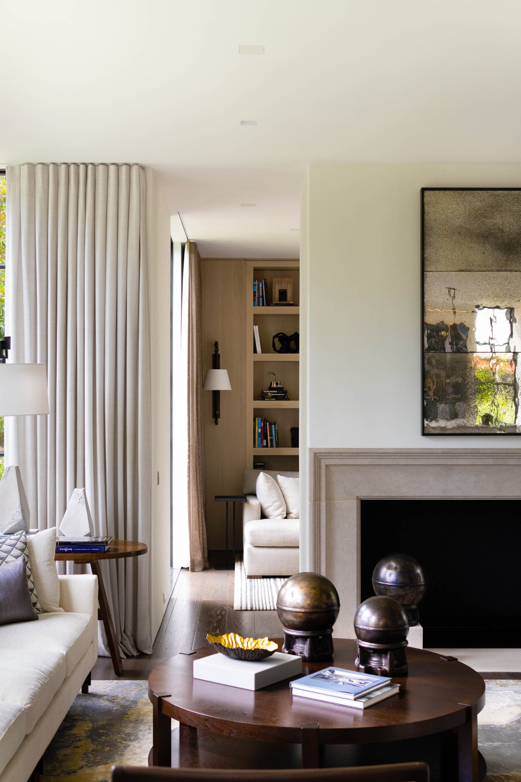 The most visible technology in the home is Lutron Alisse keypads in brushed metal. Selected to work in harmony with door hardware, the keypads are a beautiful but unobtrusive addition to the coherent design aesthetic. The Alisse keypads control a Lutron Homeworks QSX system and Lutron Palladiom shades. Selected lights on the Lutron system have also been equipped with a Tesla Powerwall and solar system, which keeps them available even when power goes out.