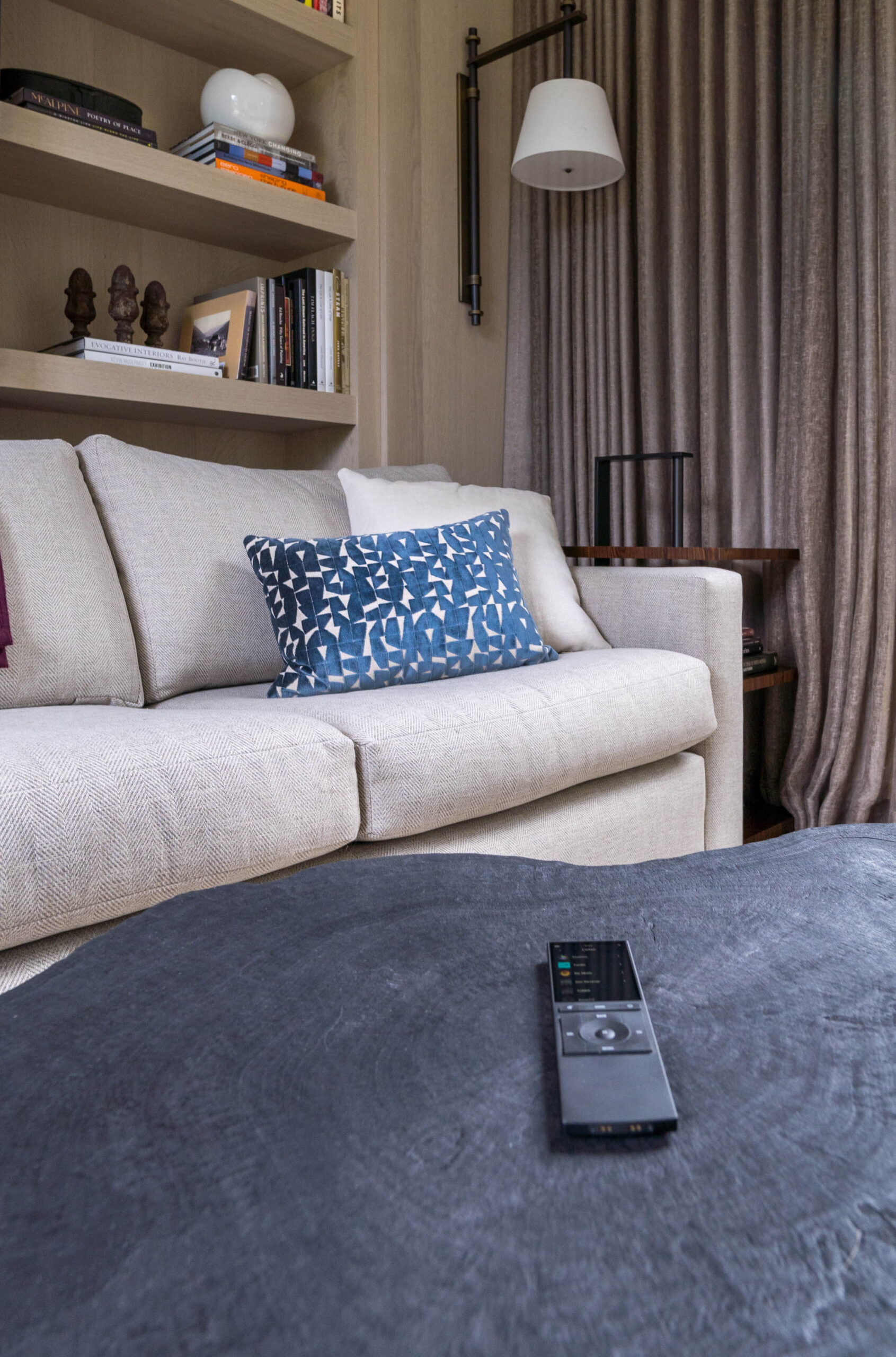 In-ceiling speakers through the home are James small aperture speakers, moulded into the ceiling alongside the lights. A Control4 system controls entertainment throughout the home, making it incredibly easy to use for the homeowners and their guests.